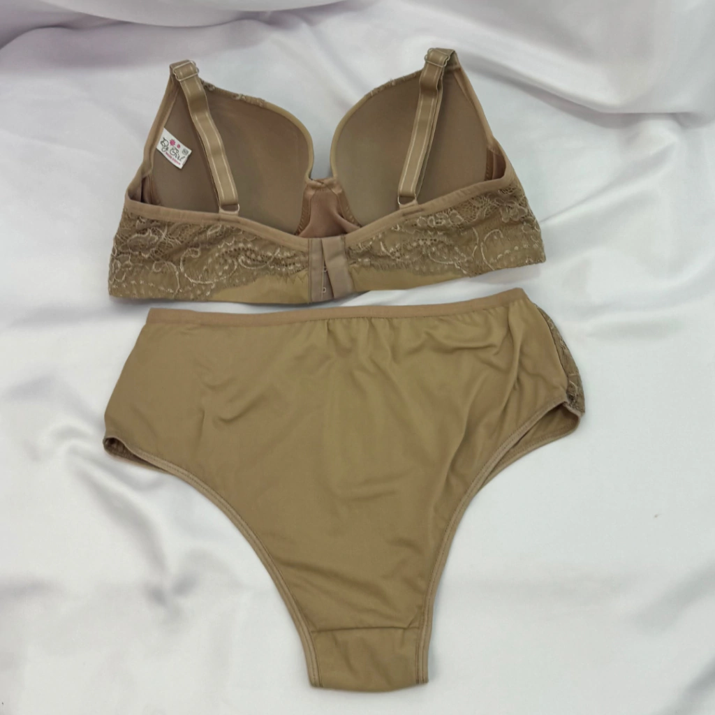 Com um toque romântico e delicado, o conjunto plus size na cor chocolate foi criado para valorizar o corpo com conforto e elegância. A renda geométrica traz um visual moderno, enquanto a modelagem oferece sustentação e encaixe perfeito — ideal para o dia a dia ou para momentos especiais.